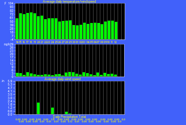 Maximum windspeed = 10.4 mph from 331°(NNW) on day 07 at time 13:06